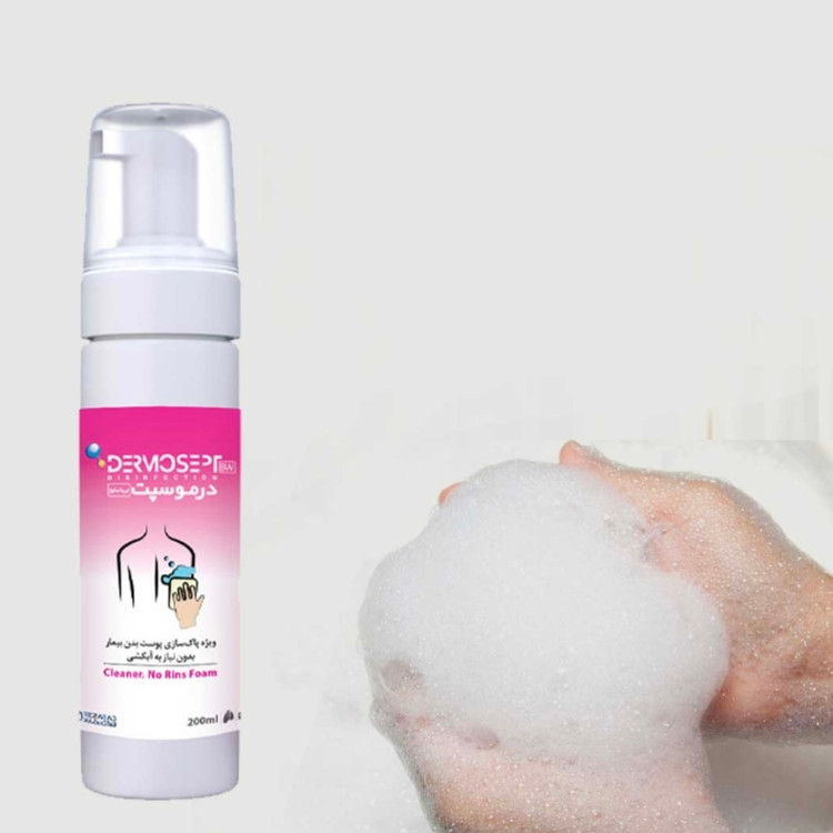 فوم پاکننده پوست بدن بیمار بدون نیاز به آبکشی درموسپت
